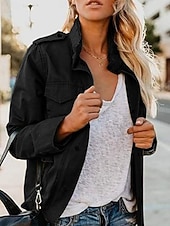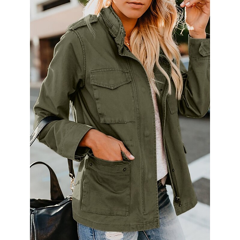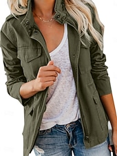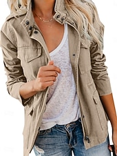 More information about Women's Casual Jacket Comfortable Breathable Zipper Pocket Casual Plain Vacation Street Casual Daily Wear Zipper Regular Stand Collar Regular Fit Long Sleeve Outerwear Black Khaki Army Green Summer
