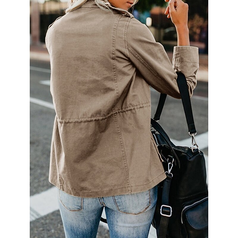 Women's Casual Jacket Comfortable Breathable Zipper Pocket Casual Plain Vacation Street Casual Daily Wear Zipper Regular Stand Collar Regular Fit Long Sleeve Outerwear Black Khaki Army Green Summer 11