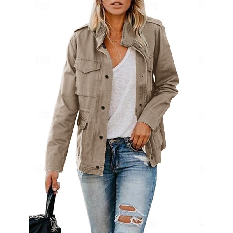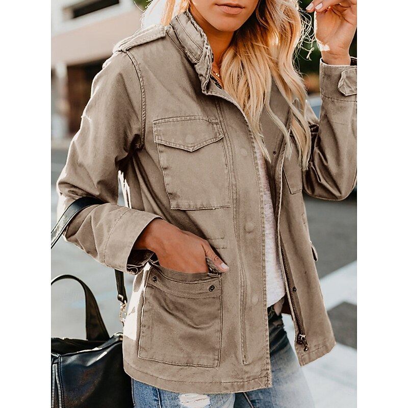 Women's Casual Jacket Comfortable Breathable Zipper Pocket Casual Plain Vacation Street Casual Daily Wear Zipper Regular Stand Collar Regular Fit Long Sleeve Outerwear Black Khaki Army Green Summer 12