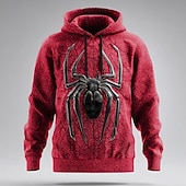 Men's Spider 3D Hoodie Sweatshirt Cool Party Crew Neck Club Streetwear Red Purple Drawstring Fall Winter Designer 3