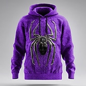HOT ! Men's Spider 3D Hoodie Sweatshirt Cool Party Crew Neck Club Streetwear Red Purple Drawstring Fall Winter Designer