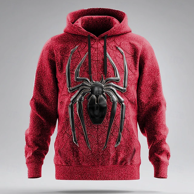 Men's Spider 3D Hoodie Sweatshirt Cool Party Crew Neck Club Streetwear Red Purple Drawstring Fall Winter Designer 11