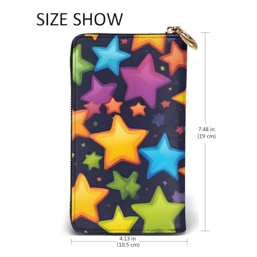 HOT ! Colorful Rainbow Stars Prints Leather Long Clutch Wallet for Fashionable Girls and Women - Durable, Stylish, and Functional, Black, One Size