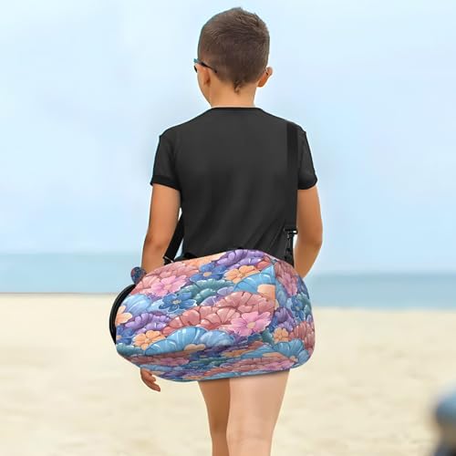 Gym Travel Duffle Bag for Boys Girls Fantasy Mermaid Scale Pattern with Flowers Sports Dance Bag with Shoe Compartment & Wet Pocket Football Kids Travel Bag Teens Sleepover Carry 6