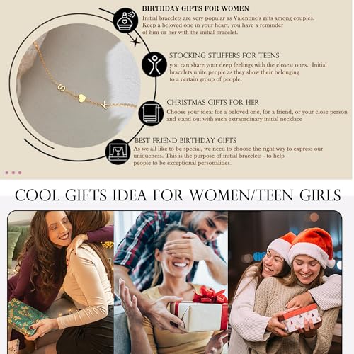 Gold Initial Bracelets for Women - Initial Bracelet Teen Gifts Trendy Stuff Stocking Stuffers for Teens Mom Christmas Gifts for Grandma Wife Best Friend Birthday Gift for Women with 2 Initials Back to School Stuff Heart Adjustable Link Bracelet Anniversary Jewelry for Girlfriend Wife Sister 4