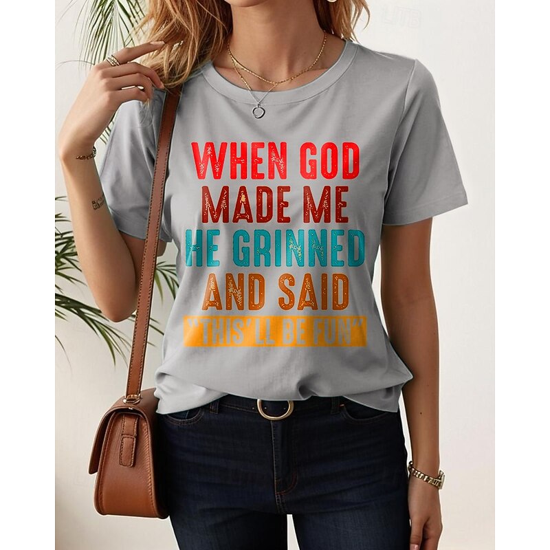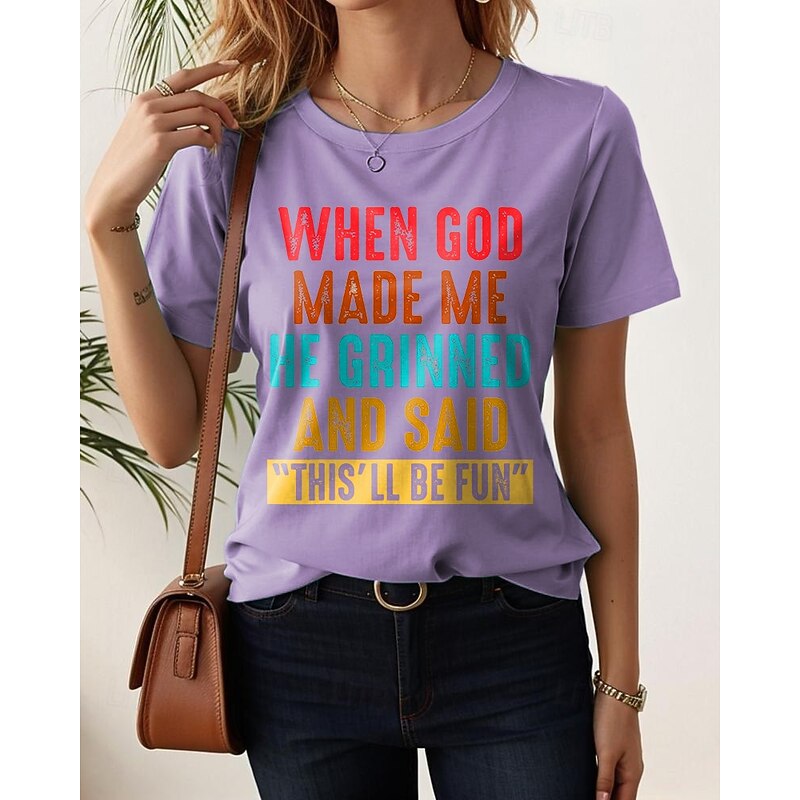More information about Women's T Shirt Graphic Letter Stylish Casual Short Sleeve Round Neck Regular Tops Daily Weekend Print Black White Pink Blue Purple Summer Spring GOD