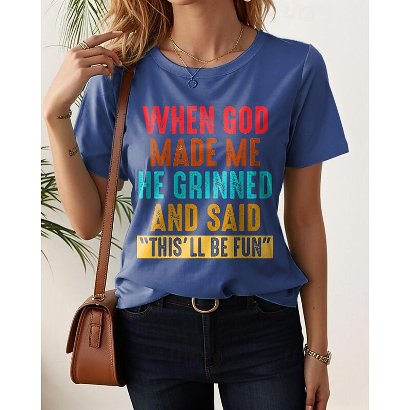 Women's T Shirt Graphic Letter Stylish Casual Short Sleeve Round Neck Regular Tops Daily Weekend Print Black White Pink Blue Purple Summer Spring GOD 13