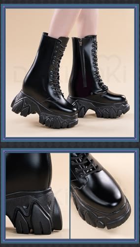 KIRA KIRA Women Cosplay Props 18cm/7in Heightening Elevator Shoes Black Invisible Thick-Soled Wedge High Heel Boots 4