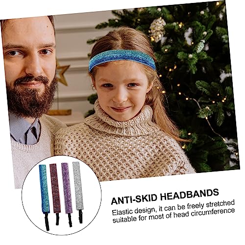 balacoo 4Pcs Sequins Sports Headband for Kids Stretchy Elastic Hairband Anti-Skid Exercise Head Wrap for Boys and Girls for Running and Sports Activities 3