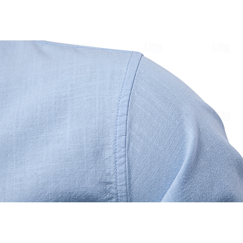 Crafted from a high-quality blend of cotton and linen, this men's shirt offers a soft, breathable, and lightweight feel, perfect for keeping you comfortable during the warmer months. The fabric's natural texture adds a touch of rustic charm, enhancing the overall aesthetic of the shirt.