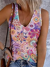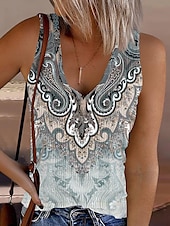 More information about Women's Camisole Tank Top Ombre Graphic Abstract Vintage Stylish Casual Sleeveless Sleeveless V Neck Regular Tops Daily Print Navy Blue Blue Purple Gray Summer Spring