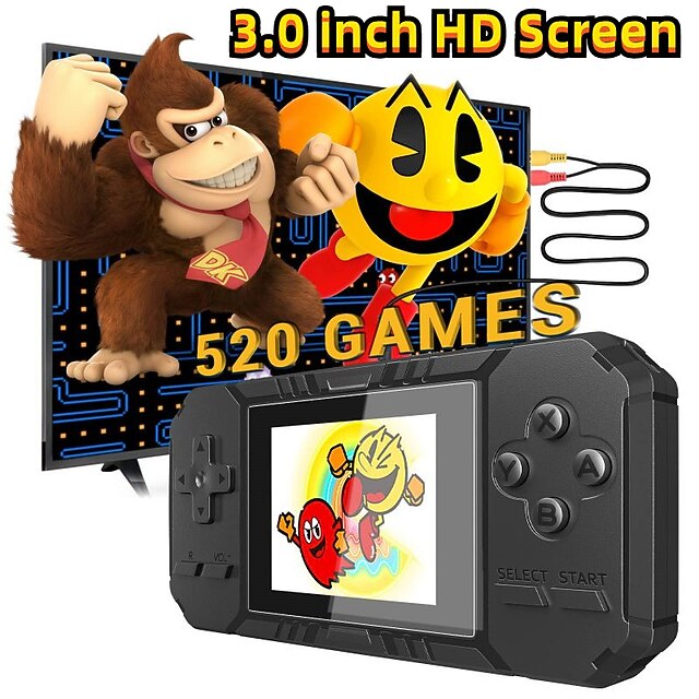 HOT ! S8 Handheld Game Console Retro Mini Game Console with 520 Classic Games 3.0 inch Screen Rechargeable Battery Portable Games Console Support TV Ideal Gift for Kids Adult Friend Lover