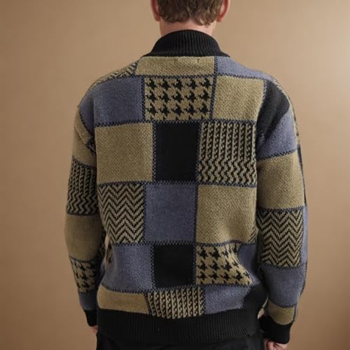 Cardigan Sweaters for Men Plaid Button Down Sweater Ruffle Shawl Collar Cardigan Vintage Open Front Sweater 7
