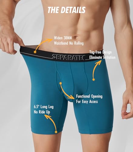 • ULTIMATE DESIGN: This Separate Pouch mens underwear not only made from High-end Micro Modal Fabric, but features widen 38MM waistband, 6.5'' no ride up long legs, tag free label and smooth soft seams. We're dedicated to creating extreme comfort for you.