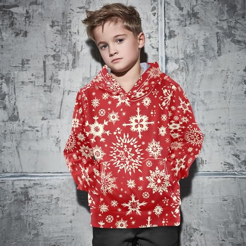 Kids Hoodies Sweaters Christmas Xmas Snowflake Hooded Sweatshirts with Big Pockets for Boys Girls B0400092 2