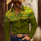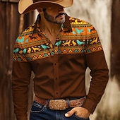 HOT ! Men's Geometric Indian Culture Navajo Pattern Shirt Western Shirt Button Up Shirt Long Sleeve Vintage Retro Outdoor Casual WorkWear Spring Fall Turndown 3D Print Collared Shirts Dark Red Blue Green