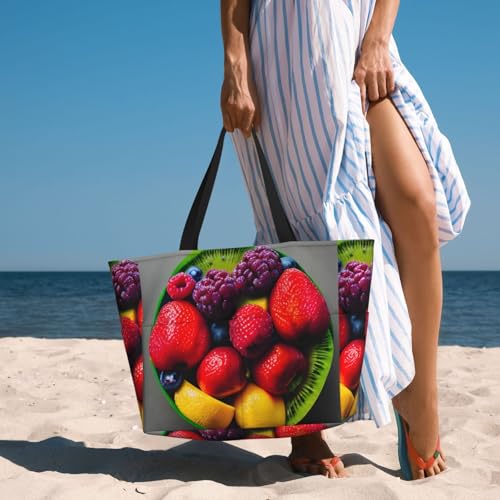 • Fresh And Juicy Fruit Rainbow Print This Beach Tote Bag Provides A Extra Space To Accommodate All Beach Essentials. It Serves As A Versatile Bag, exceptional As A Gym Bag For Women, Travel Bag Or Pool Bag.