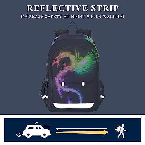 Backpack for Boys Girls, Rainbow Fire Dragon Backpack Students Bookbag Daypack for School Primary Teens 7