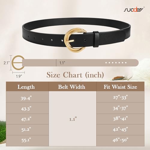 • 【Premium Women Leather Belt】 The SUOSDEY faux leather belt has exquisite alloy buckle, it brings a soft and comfortable wearing feel and highlights the great combination of quality and fashion. Choose a black leather belt to better support your jeans pants and add charm to your look.