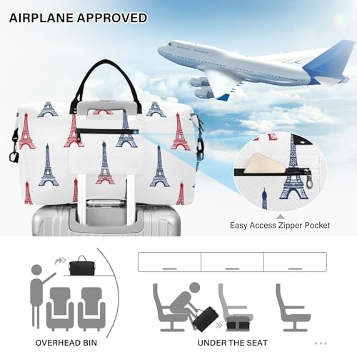Travel Gym Bag, Eiffel Tower Pattern Weekender Overnight Duffle for Women with Toiletry Bag Travel Swim 6