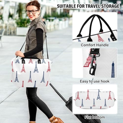 Travel Gym Bag, Eiffel Tower Pattern Weekender Overnight Duffle for Women with Toiletry Bag Travel Swim 7