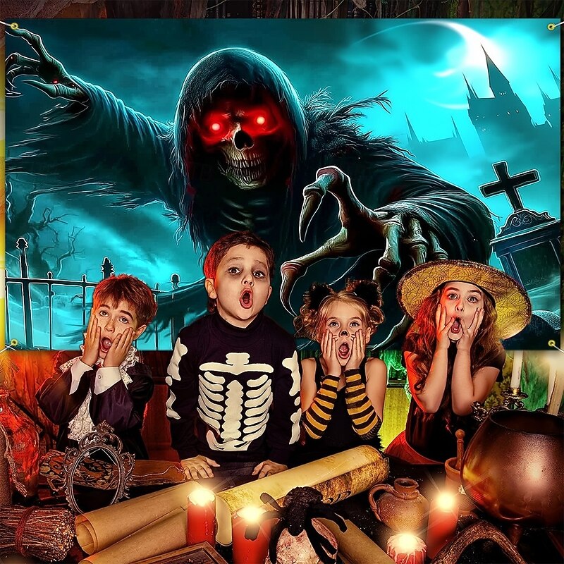 Halloween Tapestry Wall Hanging – Grim Reaper, Creepy Cemetery Scene under Bright Full Moon, Scary Gothic Horror Wall Art for 2025 Halloween Decoration 15