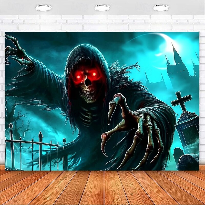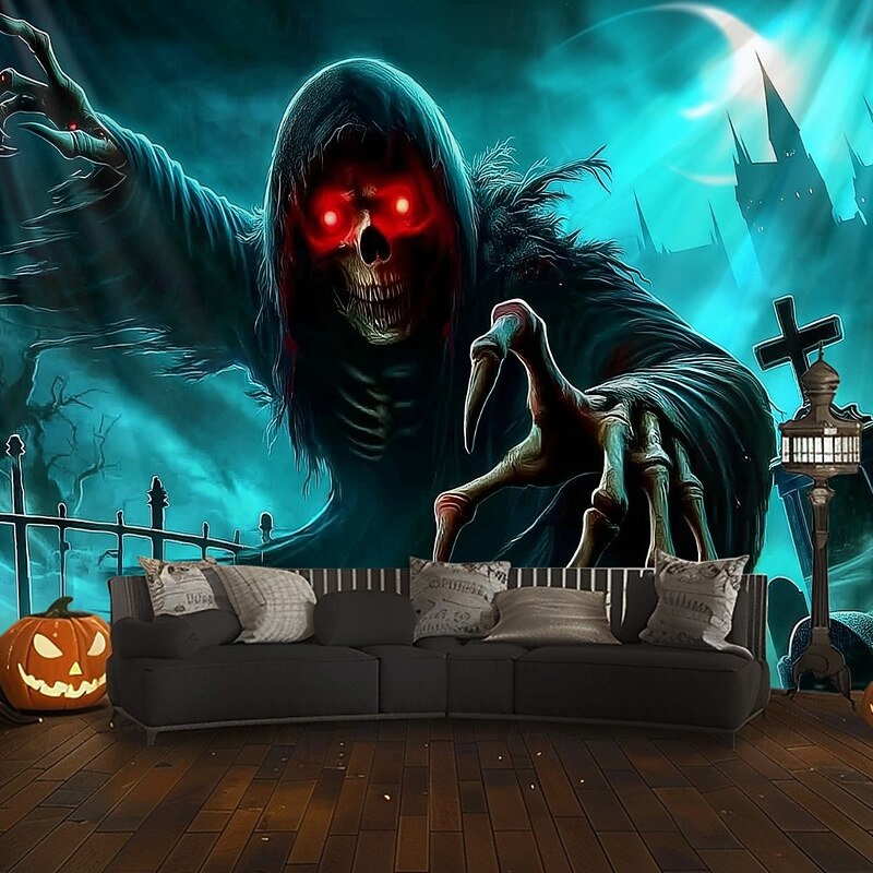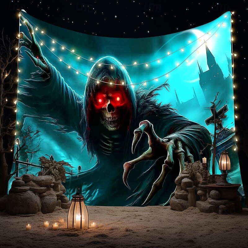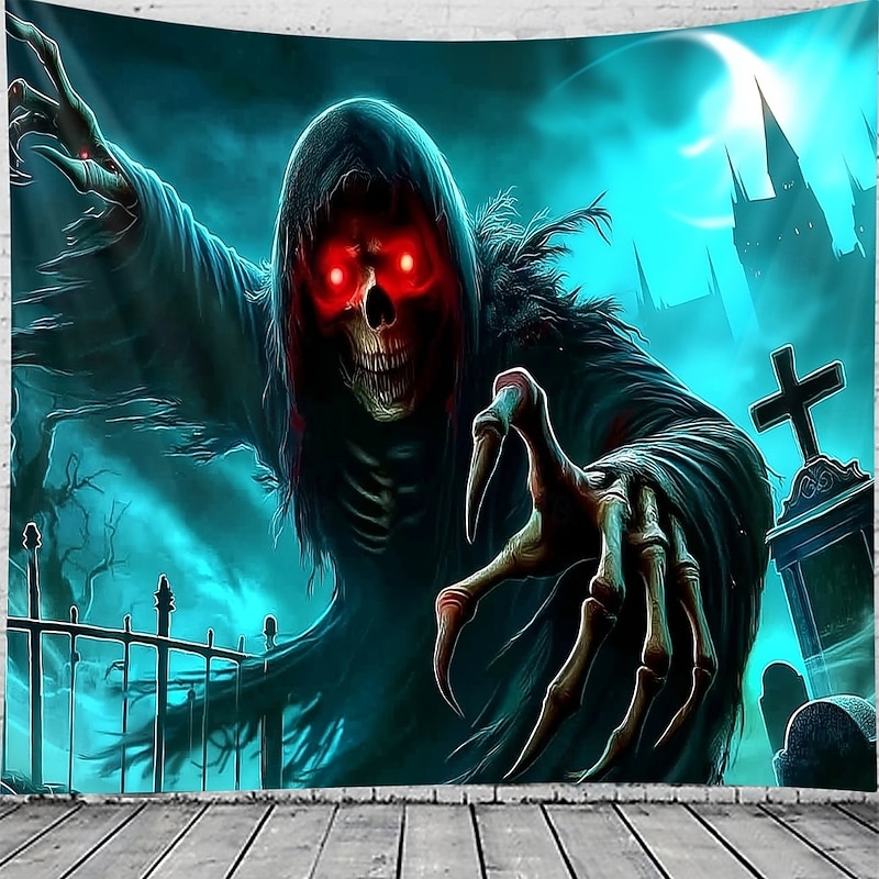 $13.99 - Halloween Tapestry Wall Hanging – Grim Reaper, Creepy Cemetery Scene under Bright Full Moon, Scary Gothic Horror Wall Art for 2025 Halloween Decoration 2025. Shop for cheap Halloween Wall Tapestries online? Buy at lightinthebox.com on sale today!