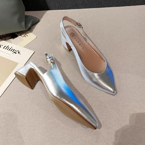 Women's High Heels Pointed Sling Low Heels Dress Bride Wedding 5