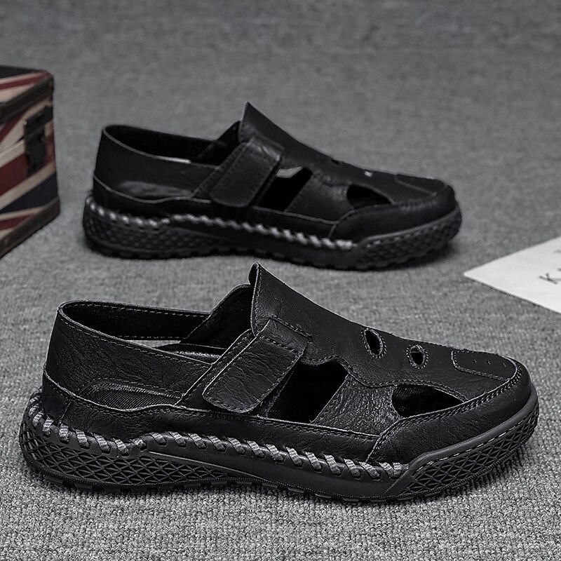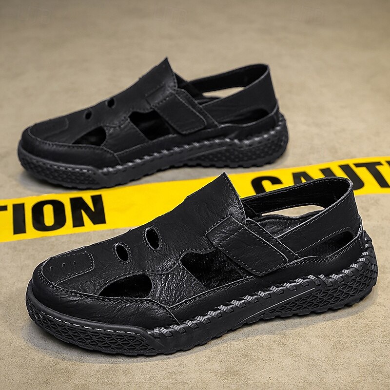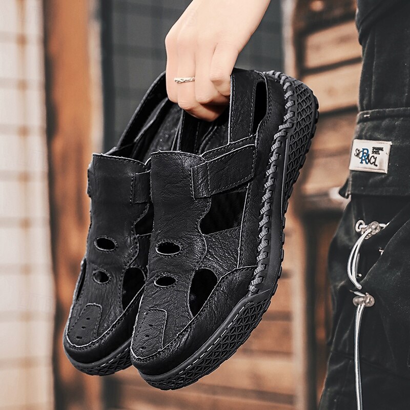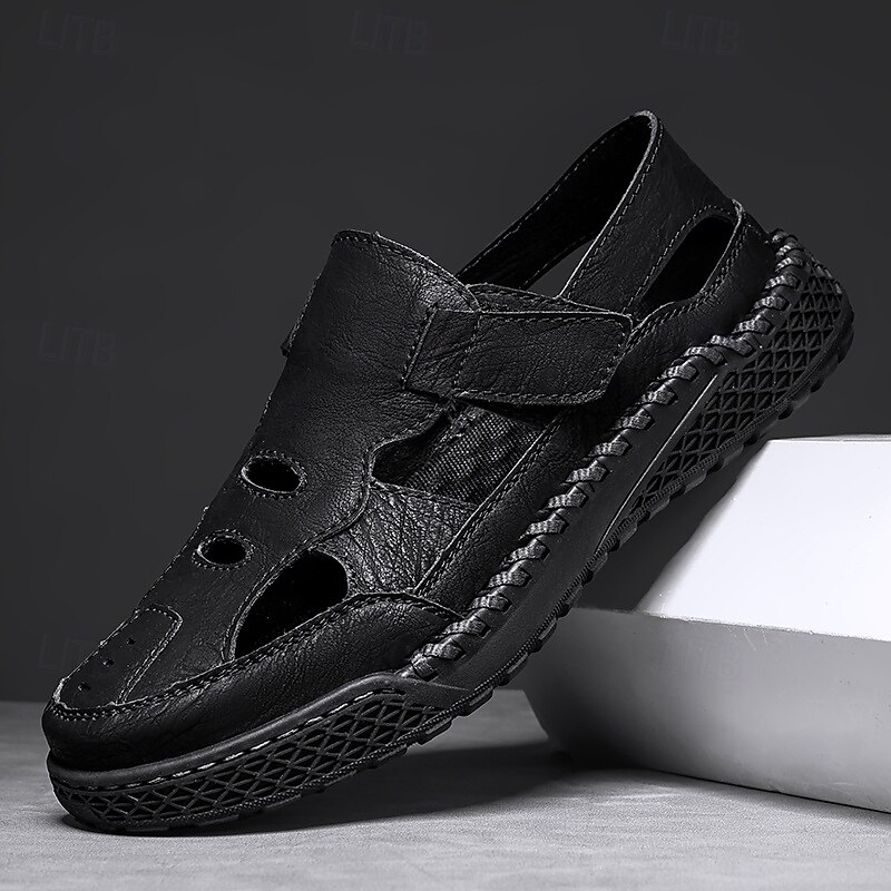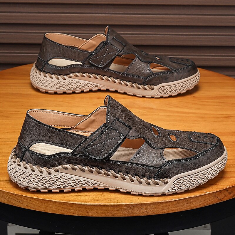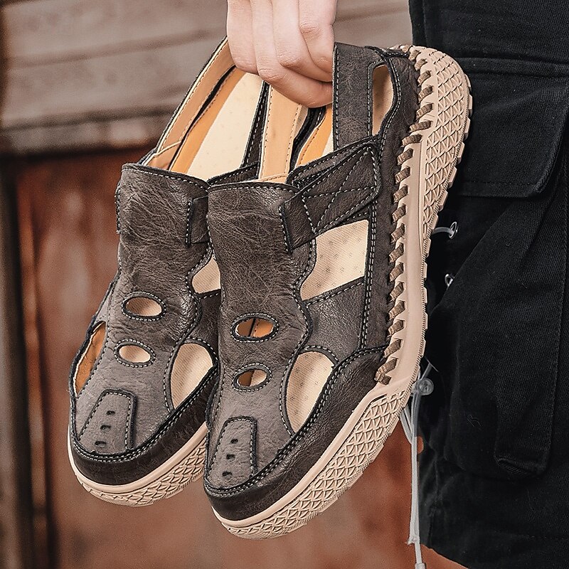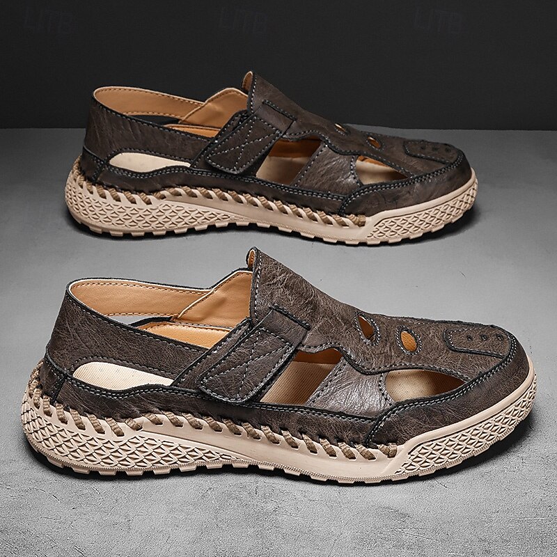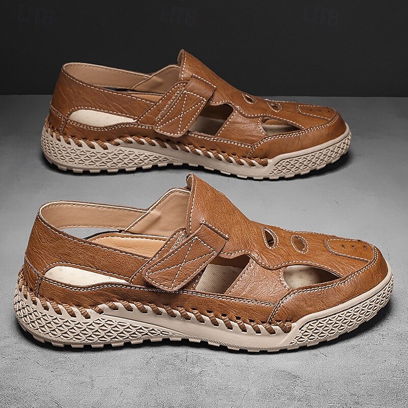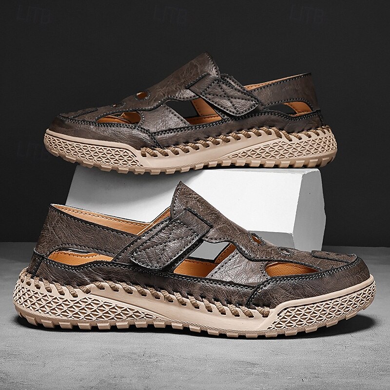 HOT ! Men's Brown Faux Leather Outdoor Sports Sandals with Breathable Perforations and Durable Grip for Hiking and Trekking