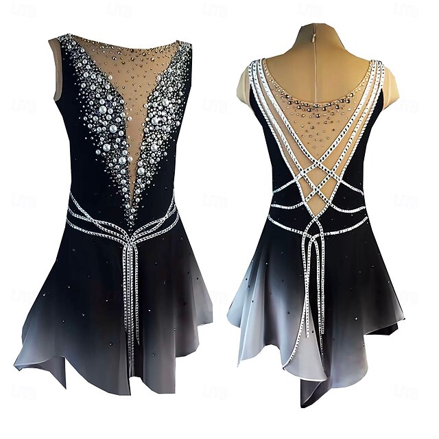 More information about Figure Skating Dress Women's Girls' Ice Skating Dress Dark Grey Thumbhole Halo Dyeing High Elasticity Professional Competition Skating Wear Thermal Warm Crystal / Rhinestone Sleeveless Ice Skating
