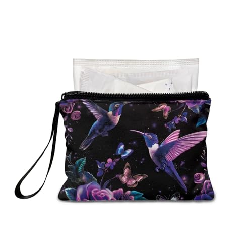 HOT ! Hummingbird Canvas Wallet Small Butterfly Womens Wallet with Coins Purse Floral Coins Purse for Women Purple Stylish Hand Purse for Women Clutch Wristlet