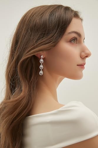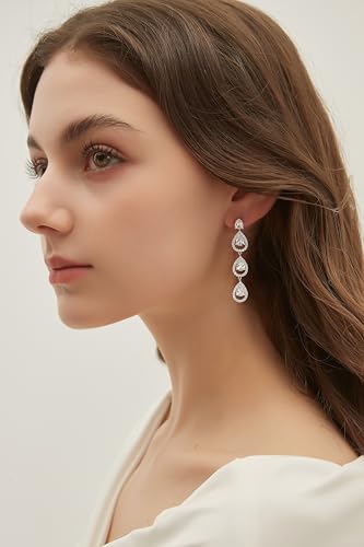 EAMTI 925 Sterling Silver Posts Dangle Earrings for Women Wedding Bridal Earrings Cubic Zirconia Teardrop Long Statement Earrings 5