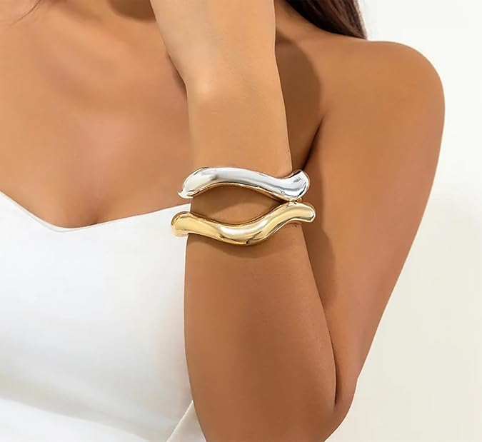 • With its adjustable design, this chunky gold bracelet effortlessly wraps around your wrist, gold bangles ensuring a comfortable and secure fit for all sizes. Say goodbye to uncomfortable jewelry - this piece is made for you.