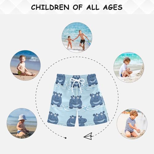 Boys Beach Board Shorts Hippo Cartoon Animal Blue Swim Trunk Teen Swimwear 8-16Y 5