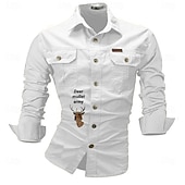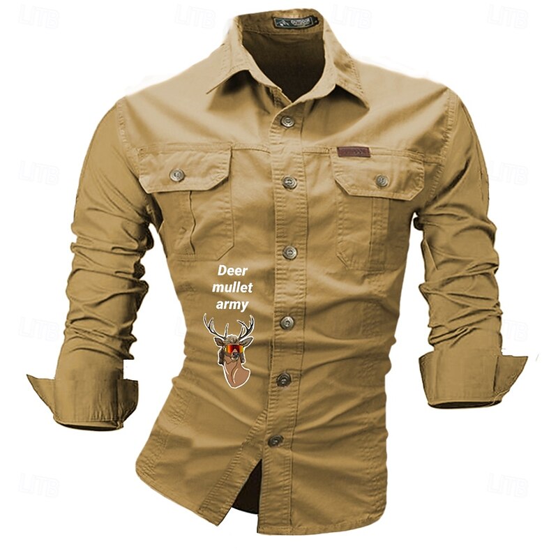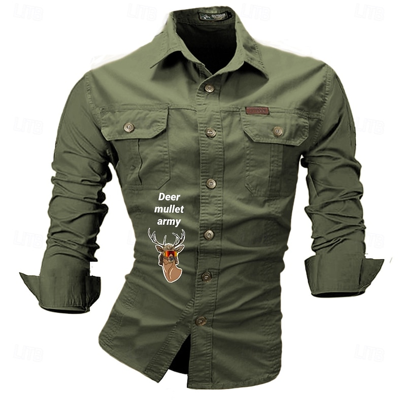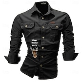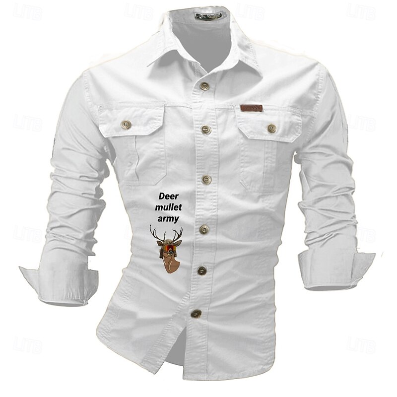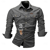 More information about Men's Letter Printed Deer Work Shirt Western Shirt Cargo Shirt Long Sleeve Western Casual Sports & Outdoor Going out Hunting Spring Fall Turndown Print Black White Army Green Red Blue