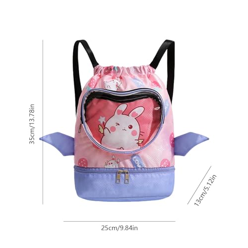 Swim Bag for Kids Wet Dry, Dry Wet Separated Sackpack Swim Backpack, Gym Backpacks with Shoe Compartments for Children Boy, Pink, Refer to description 7