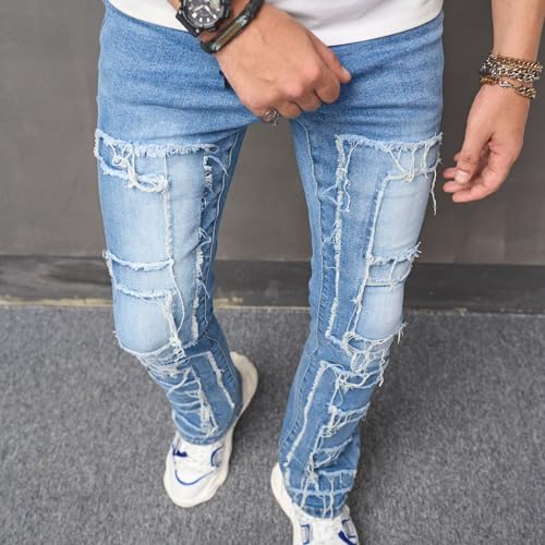 HOT ! Men Stretch Fit Skinny Stacked Ripped Slim Fit Jeans Y2K Denim Pants Slim Fit Trousers Streetwear