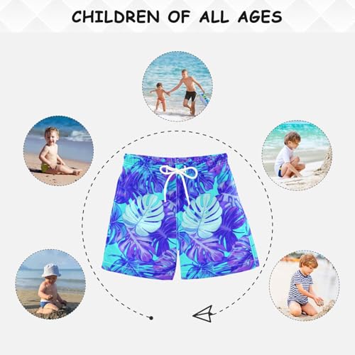 DOMIKING Monstera Leaf Plant Teal Toddler Boys' Swim Trunks Mesh Lining Swim Shorts for Kid Boy Toddler Adjustable Waist 3