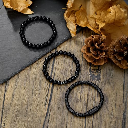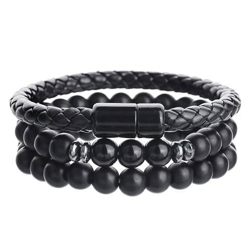 3PCS Summer Cold Bracelets for Women Men, Cold Stone Beaded Bracelets for Women, Layered Leather Bracelet for Men, Personalized Halloween, Christmas, Birthday Gifts, Summer Jewelry 1