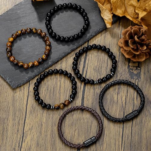 3PCS Summer Cold Bracelets for Women Men, Cold Stone Beaded Bracelets for Women, Layered Leather Bracelet for Men, Personalized Halloween, Christmas, Birthday Gifts, Summer Jewelry 6