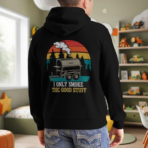 Kids Retro I Only Smoke The Good Stuff Funny BBQ Smoker Saying Boys Girls Lightweight Kangaroo Pocket Hoodies 5