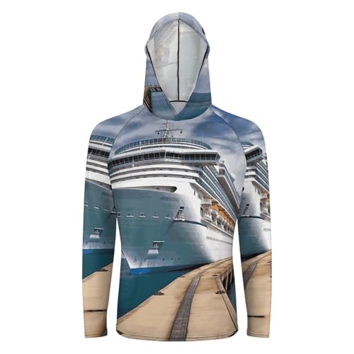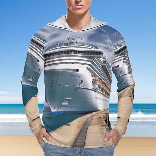 Men's Sun Shirts UPF 50+ Rash Guard Long Sleeve Sun Protection Hoodie Cruise Ship Lightweight Shirt XL White 7