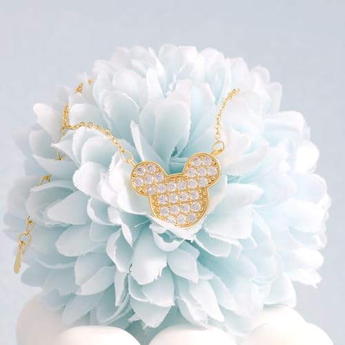 Gold Cute Necklace for Girls Teens Women - Sterling Silver Mouse Pendant Necklace Hypoallergenic Cubic Zirconia Adjustable Dainty Lovely Necklace Fashion Jewelry Adorable Gifts for Christmas Daughter 1