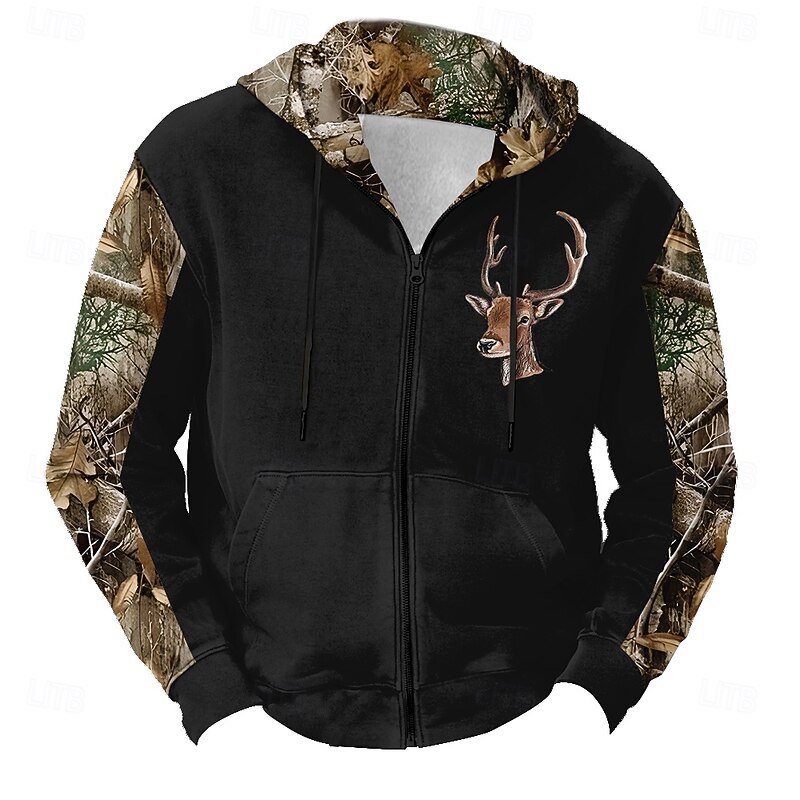 More information about Men's Camo Deer Hoodies Fashion Daily Long Sleeve Hooded Vacation Hunting Black Brown Drawstring Zipper Fall Winter Designer