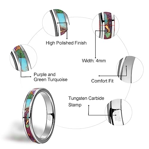 Vakki Silver Tungsten for Women Wedding Bands Inlaid with Purple Copper Turquoise Promise Ring Jewelry Gift for Wife Brides Mother Comfort Fit Size 7-12 4