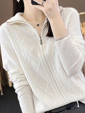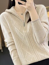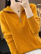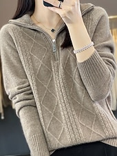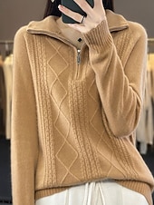 More information about Women's Sweater Pullover Fashion Casual Pure Color Ribbed Half Zip Zipper Knitted Long Sleeve Regular Tops Knit Outdoor Daily Weekend Camel Fall Winter