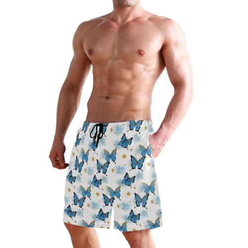 Quick Dry Blue Butterflies with Golden Men's Swimming Shorts Swim Trunks with Mesh Lining Beach Wear - S 5