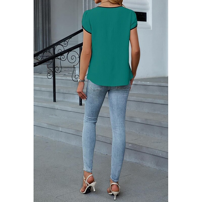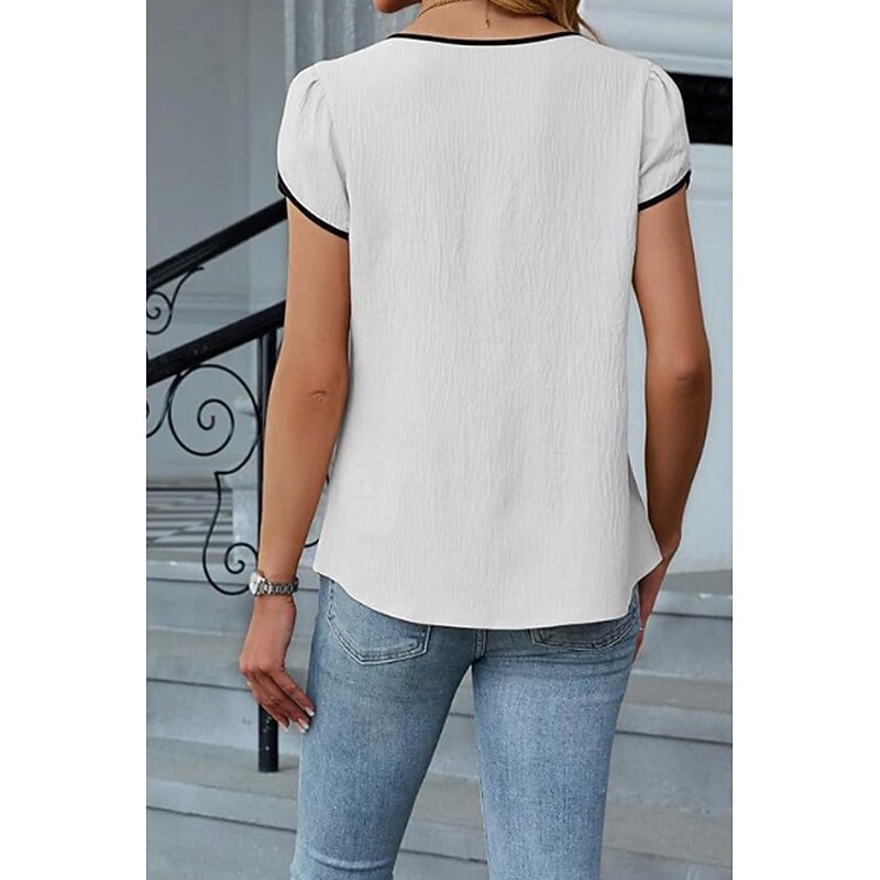 Women's Blouse Color Block Modern Casual Short Sleeve V Neck Regular Tops Holiday Going out Patchwork Black White Green Apricot Summer 24
