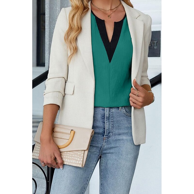 Women's Blouse Color Block Modern Casual Short Sleeve V Neck Regular Tops Holiday Going out Patchwork Black White Green Apricot Summer 16