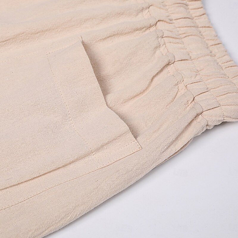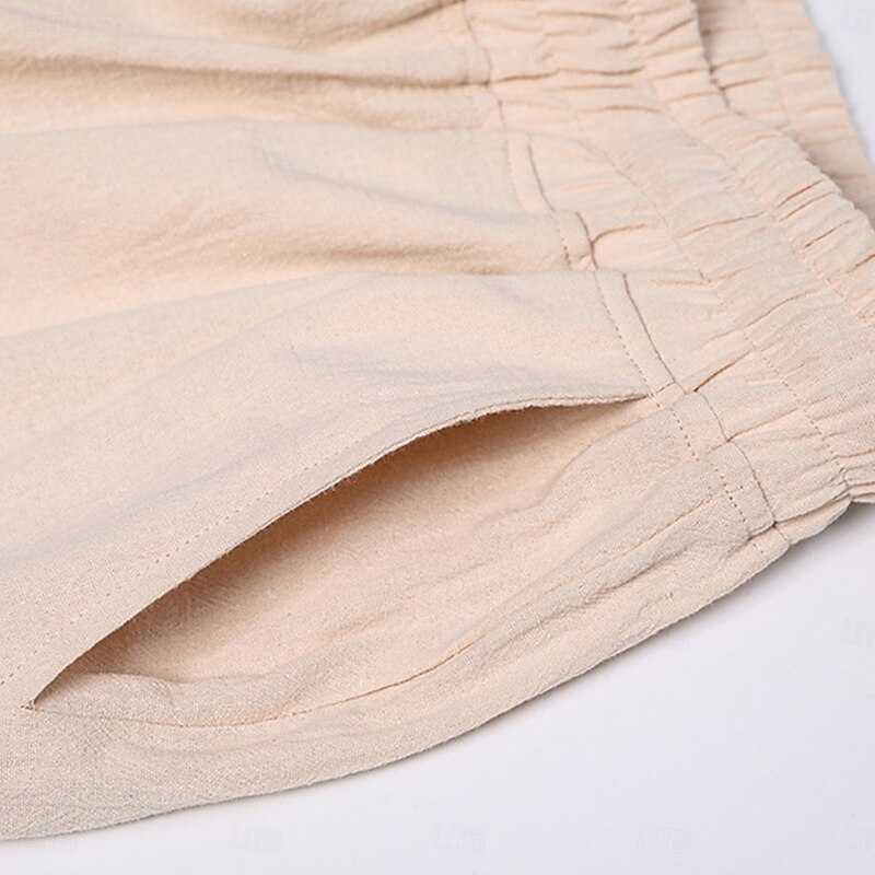 Men's Shorts Linen Shorts Summer Shorts Beach Shorts Drawstring Elastic Waist Plain Comfort Breathable Knee Length Outdoor Daily Beach Vacation Fashion Black Pink 20